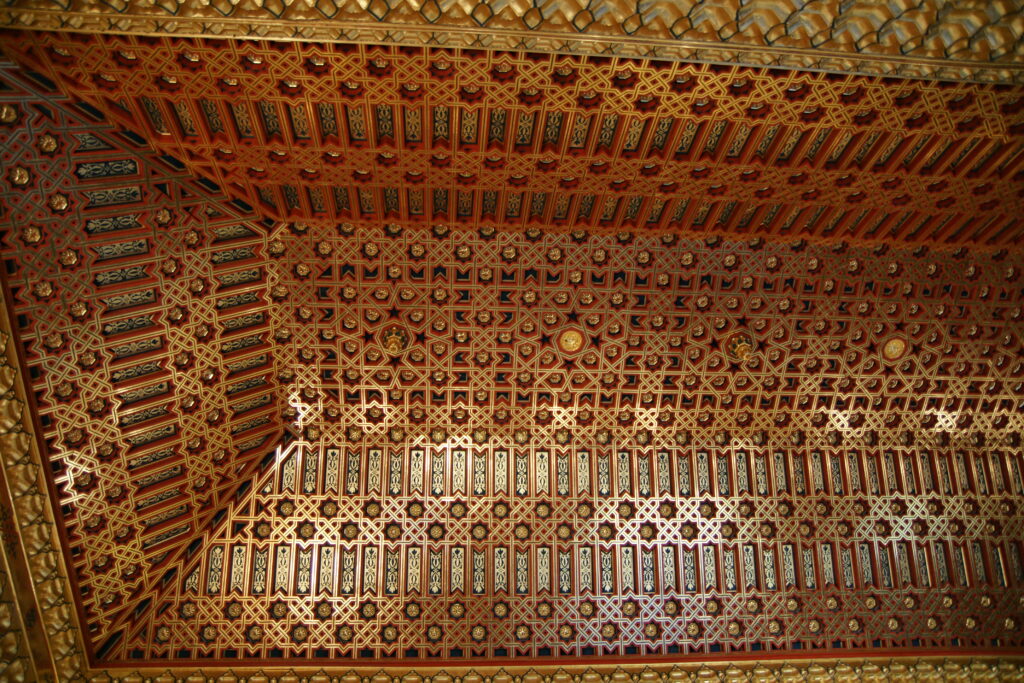 Alcázar vyniká svým unikátním vzhledem, zejména díky výrazným věžím, rozsáhlým nádvořím a dekorativnímu zpracování. Jeho bílý kamenný vzhled dodává hradu pohádkový a impozantní vzhled – posloužil dokonce jako předloha pro Disneyho Popelčin zámek. Zvláště pozoruhodná je trůnní místnost tzv. „Síň slunce“ (Sala del Solio) s výrazným gotickým žebrovím a nádhernými freskami. Ale i ostatní sály jsou nádherné – na našem obrázku je stropní zdobení v místnosti Sala de la Galera.