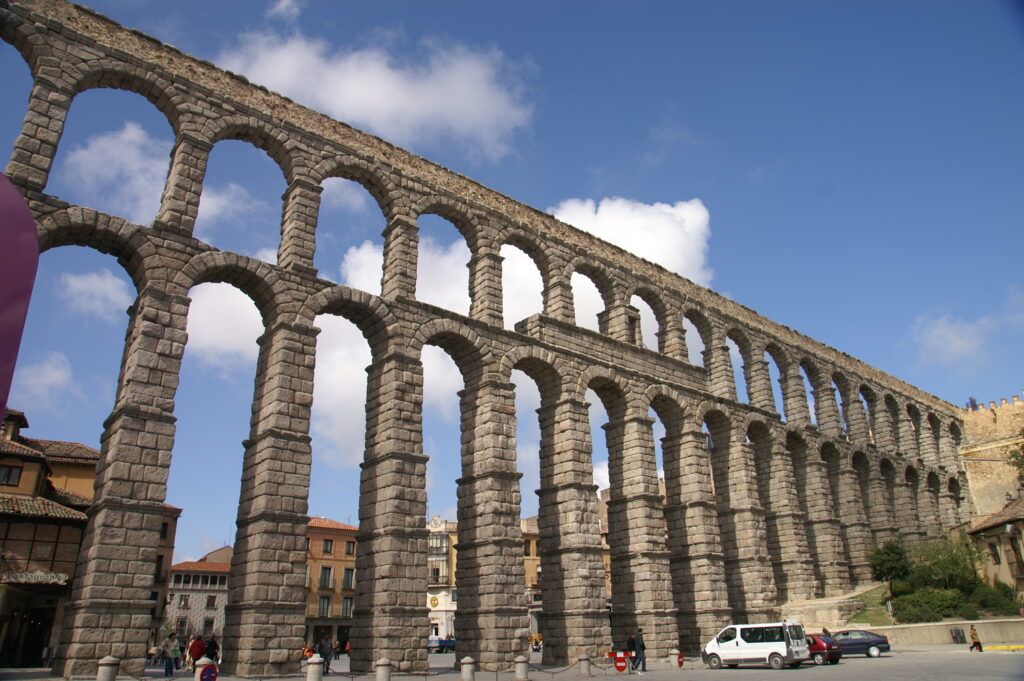 Jednou z nejvýraznějších památek v Segovii je akvadukt, římský inženýrský zázrak, který dodnes dominuje městu. Akvadukt byl postaven v prvním století našeho letopočtu a sloužil k dopravě vody do města. Jeho kamenné oblouky jsou považovány za jedno z nejlepších římských inženýrských děl ve Španělsku.