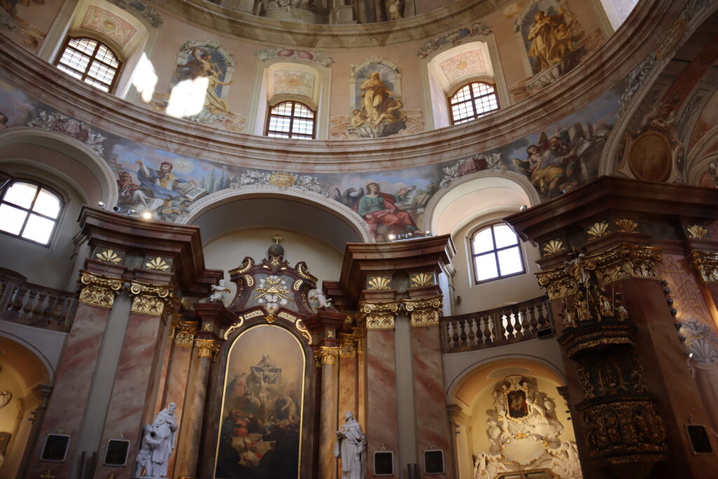 Kousek od zámku v Jaroměřicích nad Rokytnou se nachází kostel sv. Markéty. Původně jsme do něj chtěli jenom nakouknout, ale nakonec jsme se nechali milými slečnami za pokladnou přemluvit i na prohlídku a rozhodně jsme nelitovali.